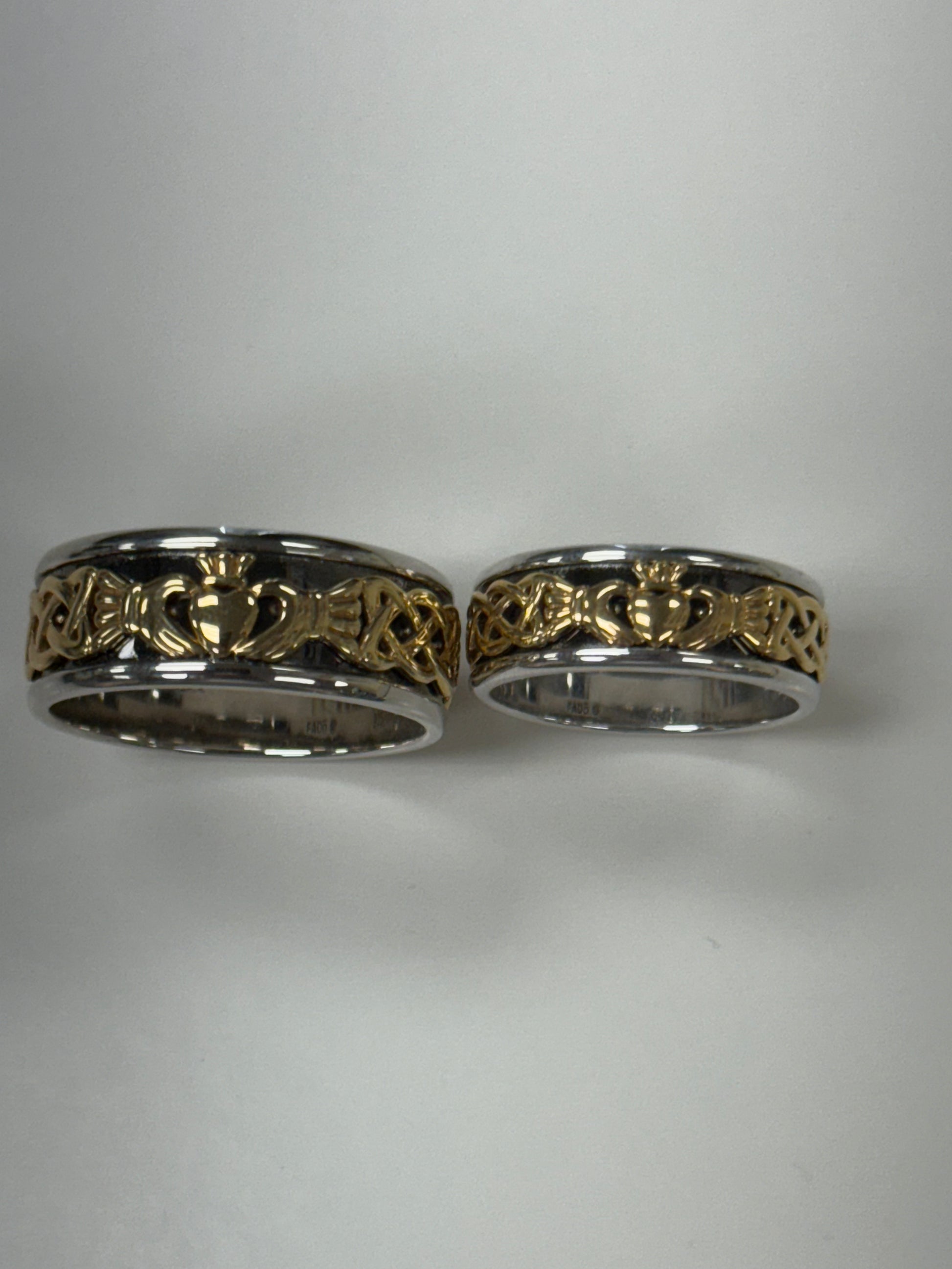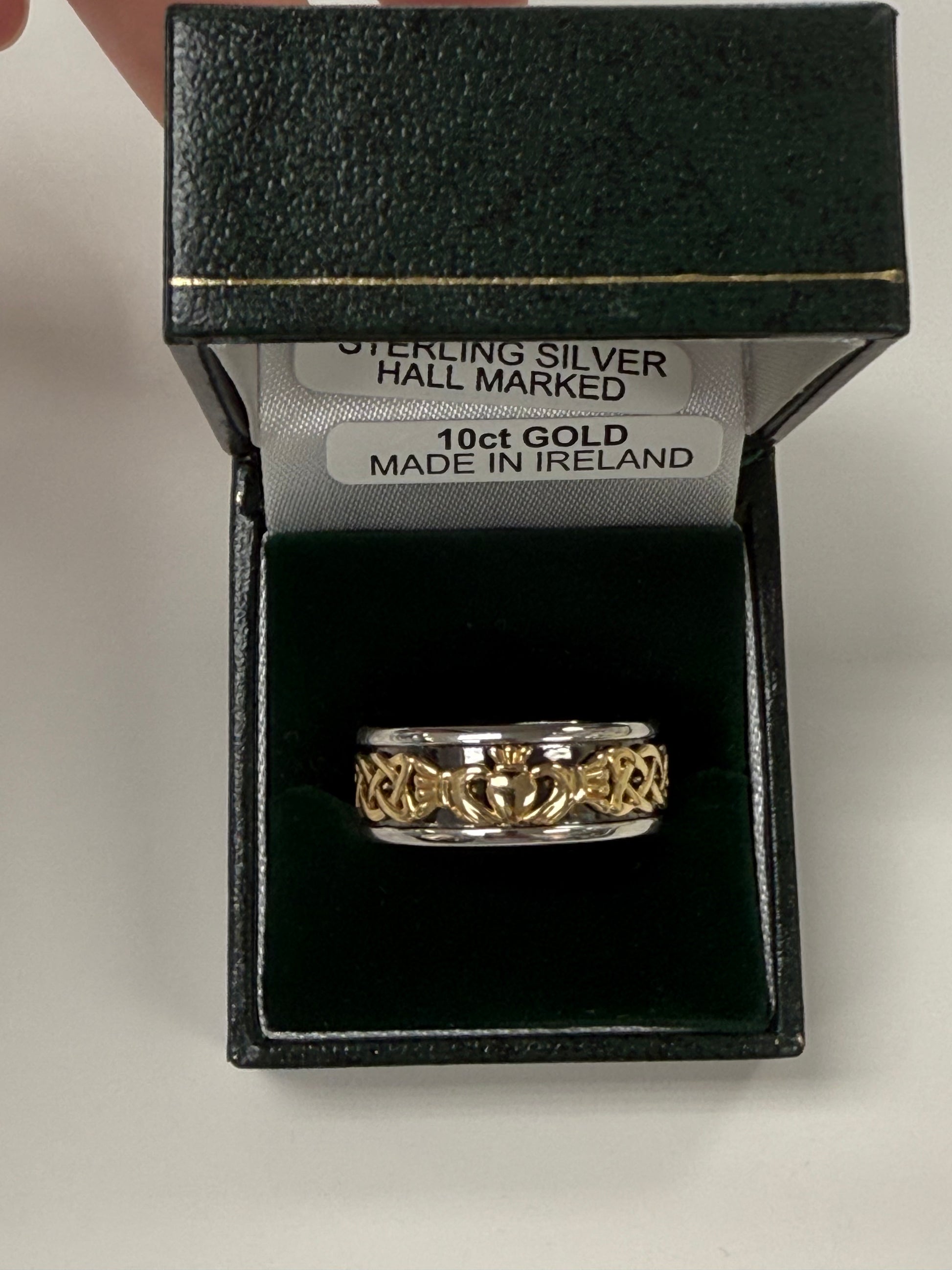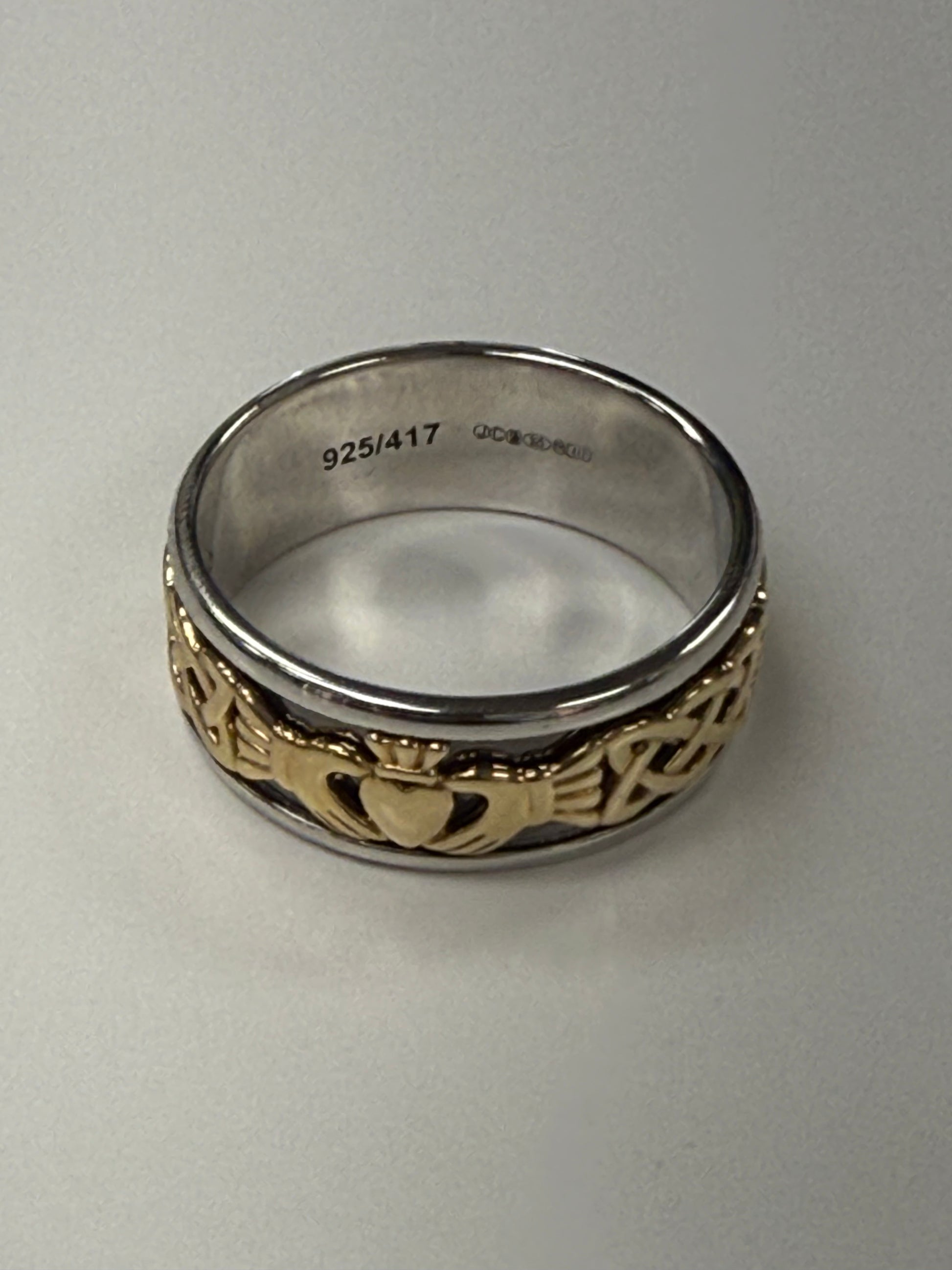 10K Two Tone Wide Claddagh Celtic Knots Band R126