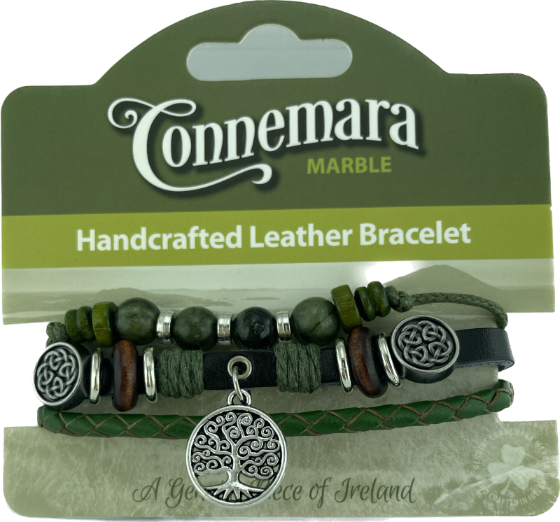 CONNEMARA MARBLE AND LEATHER HIPPY BRACELET TREE OF LIFE