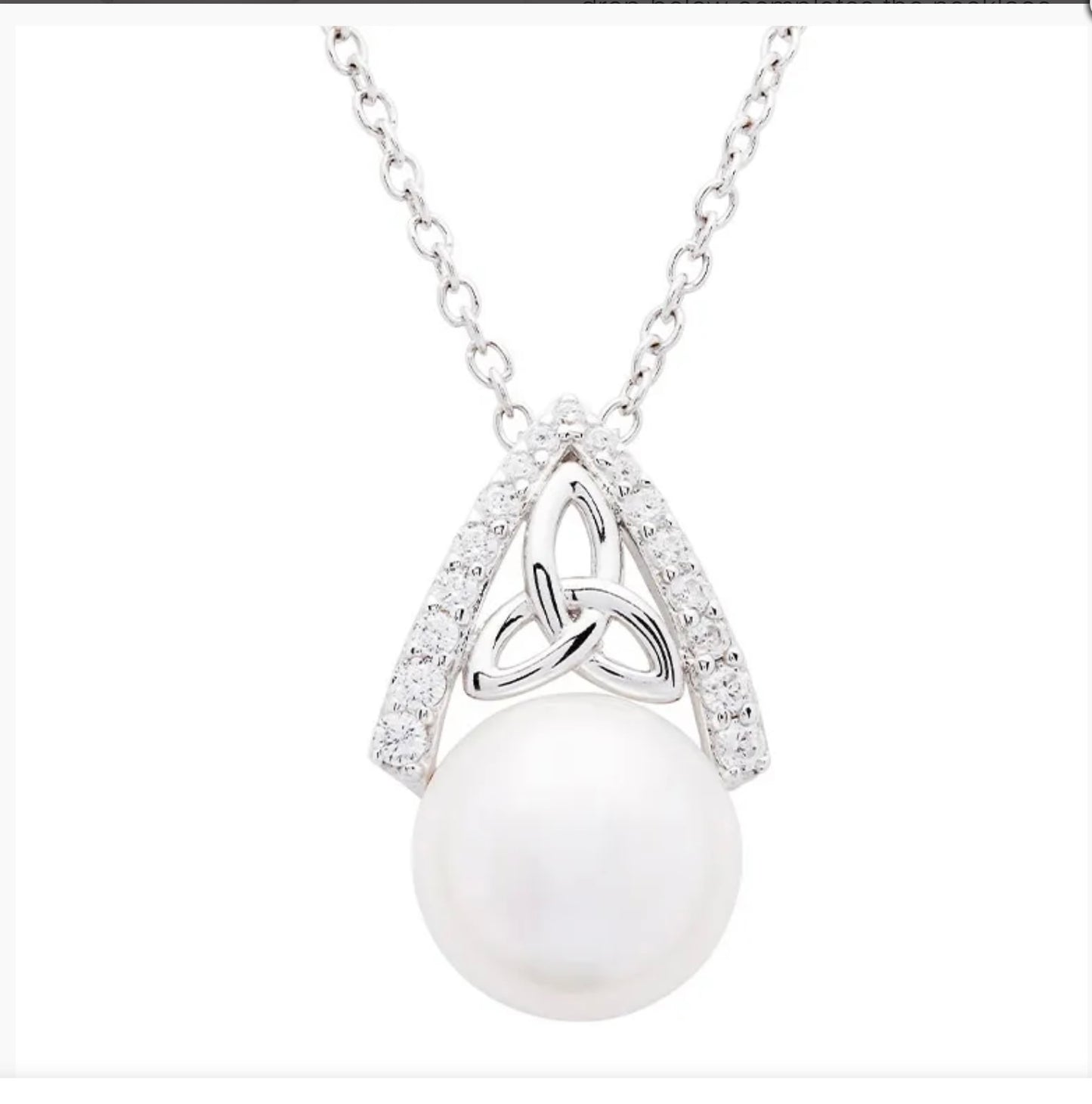 Intricate Sterling Silver Pearl Trinity Knot Pendant SKU: SP2291