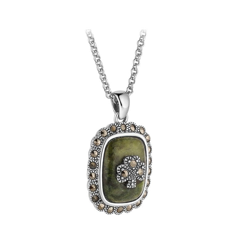 STERLING SILVER MARBLE & MARCASITE SHAMROCK NECKLACE S47086